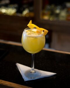 sensual Frutto Della Pasione con Maracuyá mezcla de cítricos y puede llevar ginebra o mezcal.